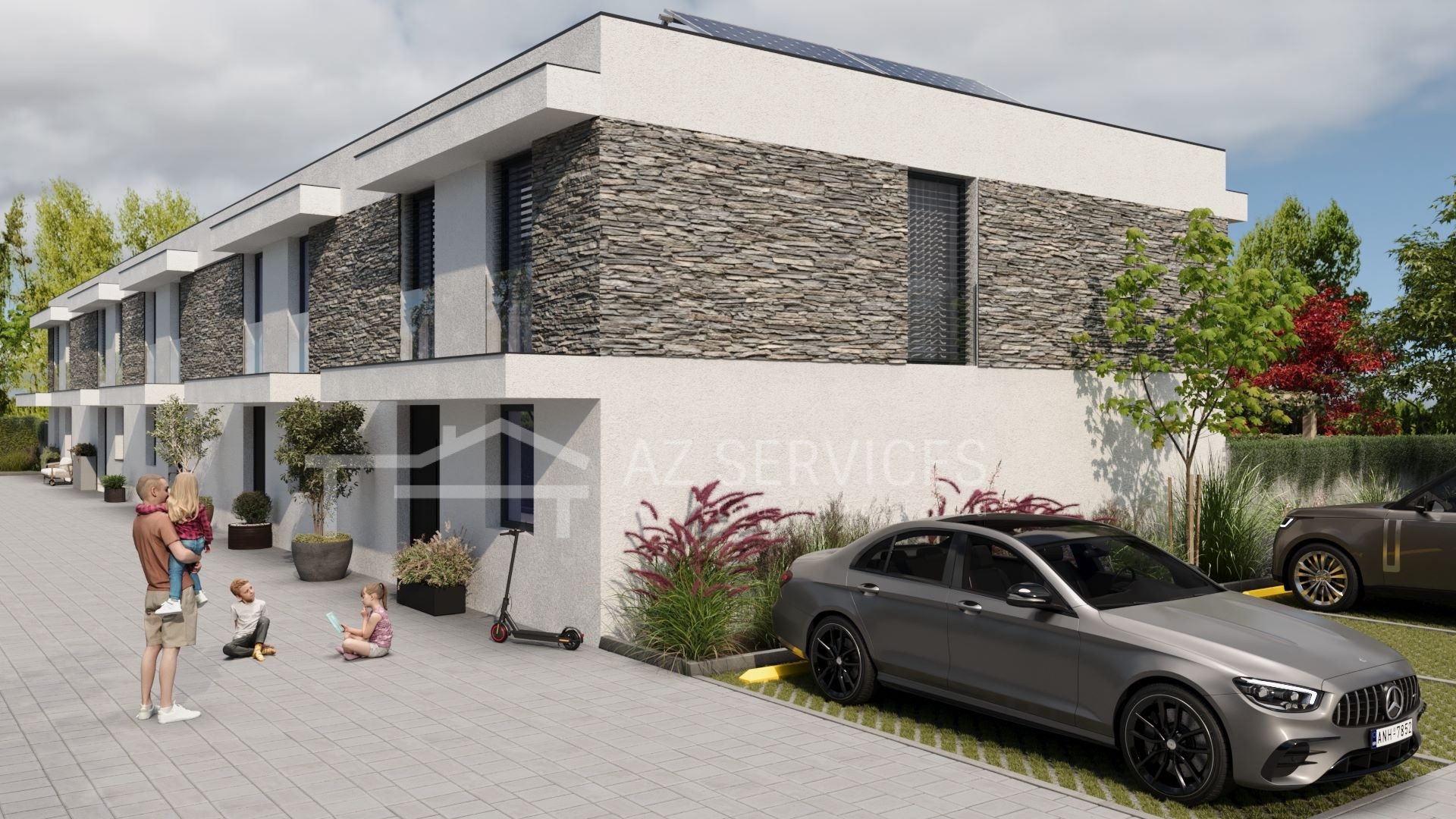 V meste Hainburg an der Donau ponúkame na predaj 5-izbovú tehlovú novostavbu s úžitkovou plochou 124 m², terasou, záhradou a parkovacími plochami. Dom je súčasťou radovej zástavby piatich rodinných domov, pričom každý dom je konstrukčne oddelený od ostatných domov.