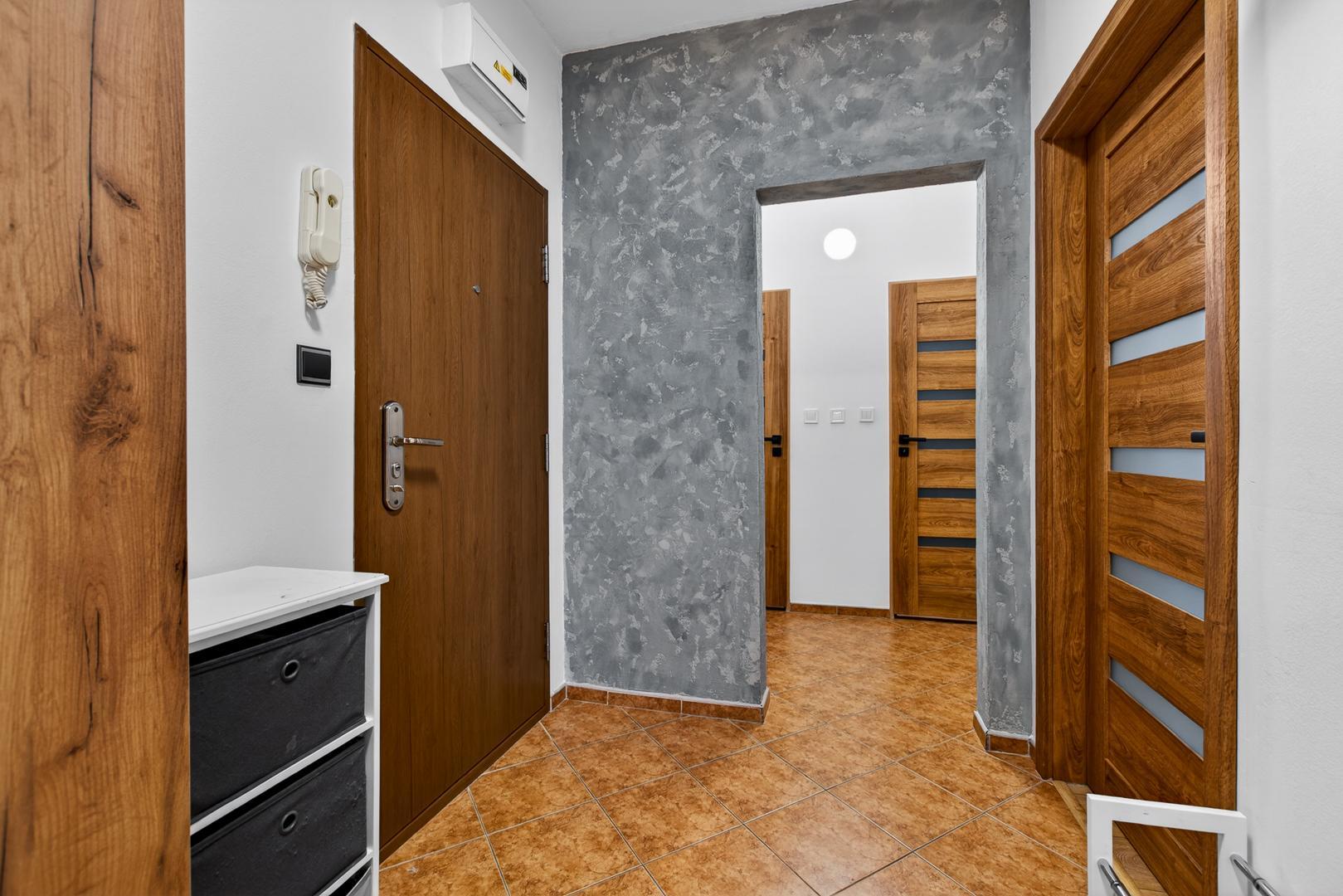 Bytový dom disponuje vstupom cez elektrickú bránu a kamerovým systémom na chodbách, čo zvyšuje komfort aj bezpečnosť bývania. Do bytov sa vstupuje cez ďalšie bezpečnostné dvere na chodbe pri výťahoch, vďaka čomu máte dvojitú istotu.