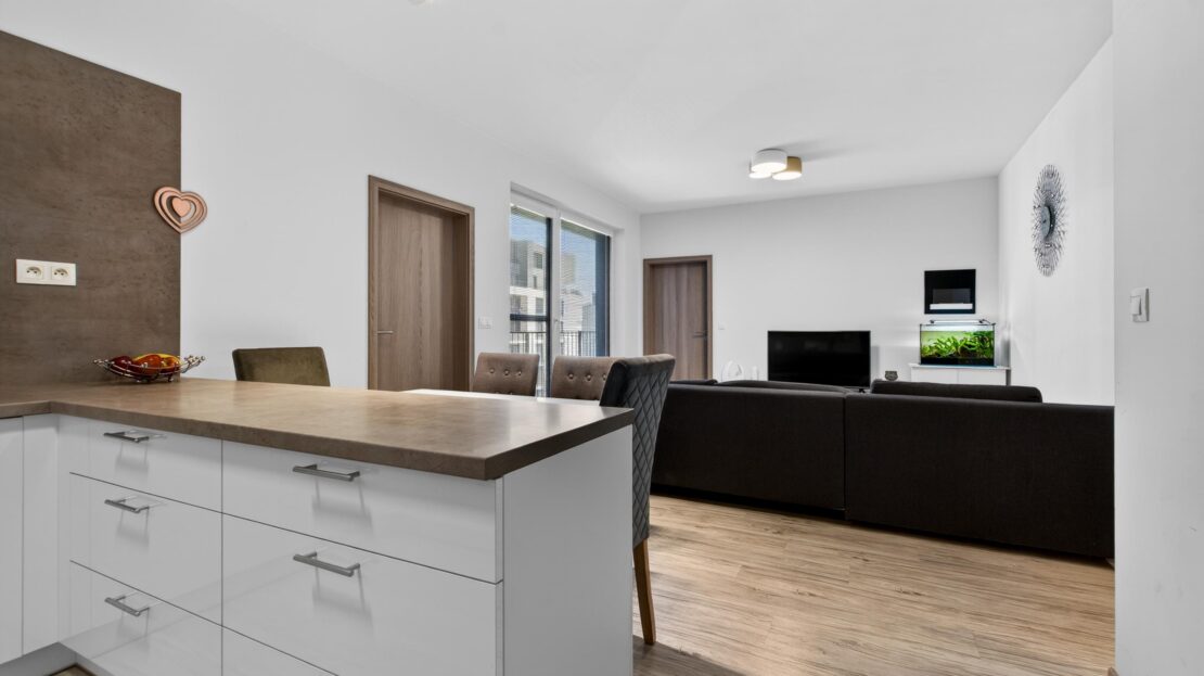 Samozrejmosťou je aj veľmi dobrá dostupnosť do centra mesta (aj električkou) a rýchle napojenie na hlavné dopravné ťahy. Byt ponúka ideálnu kombináciu moderného bývania, praktickej dispozície a pokojného prostredia – vhodný najmä pre rodinu, ktorá hľadá kvalitné bývanie s kompletnou vybavenosťou v okolí.